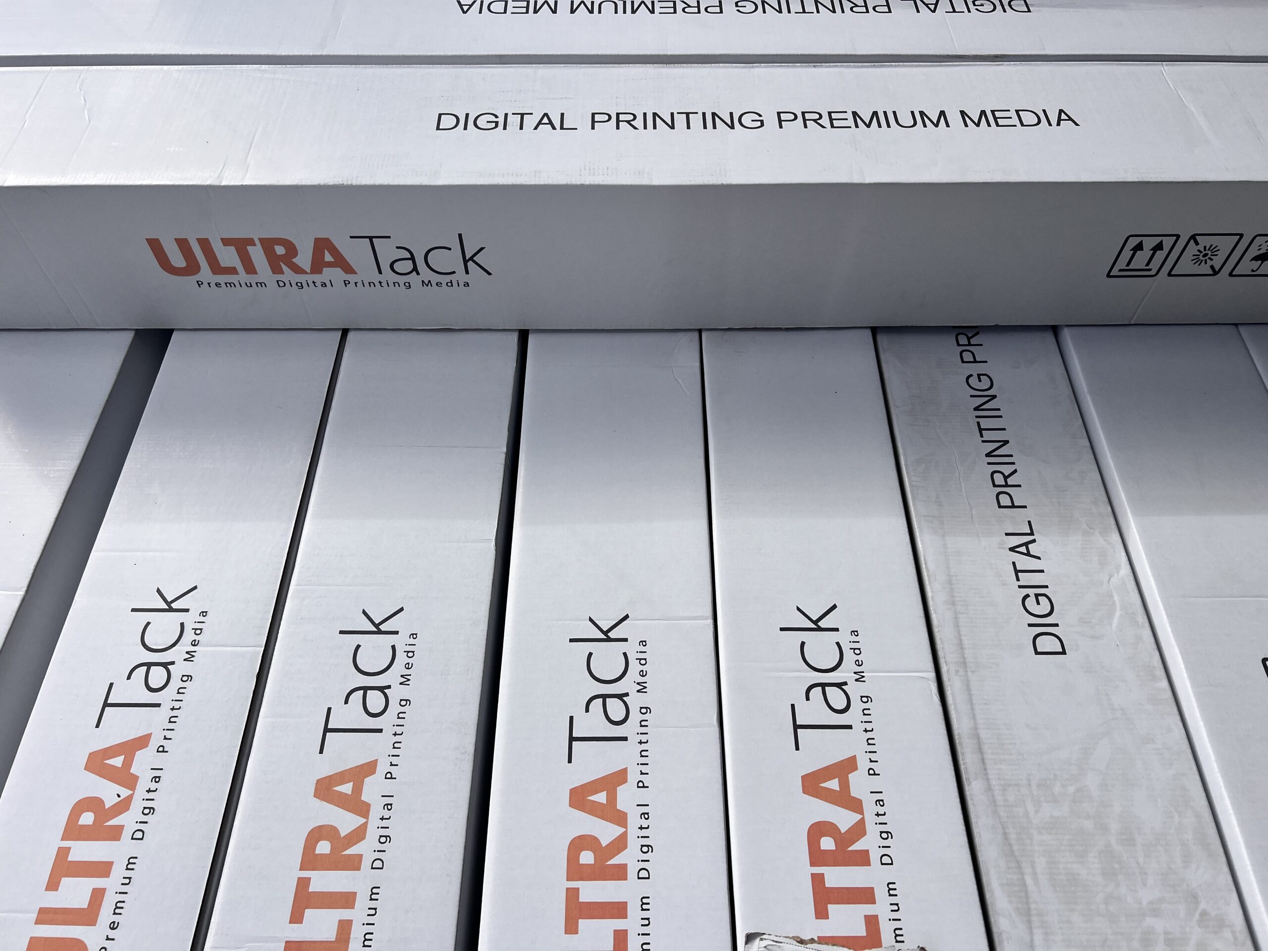 Vinyl brillante marca ULTRA-TACK con un adhesivo gris permanente de alto pegado, para ofrecer un mejor desempeño al momento de su aplicación, duración al exterior.